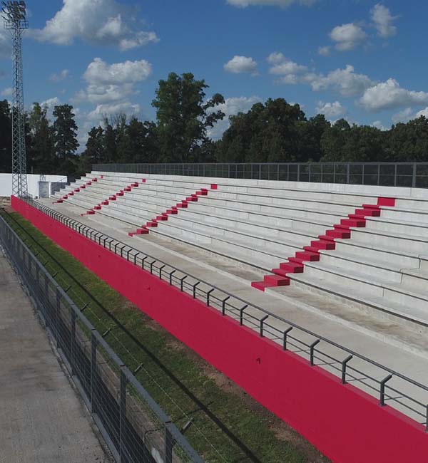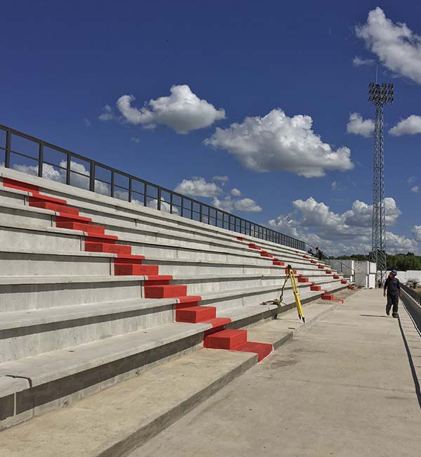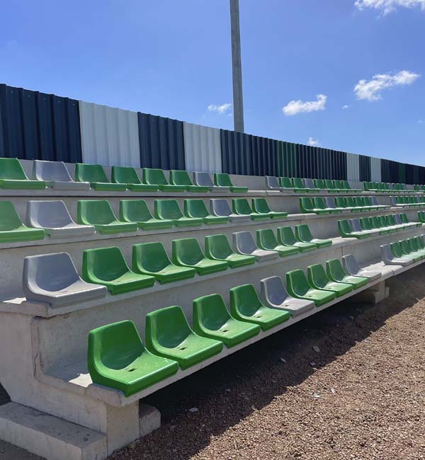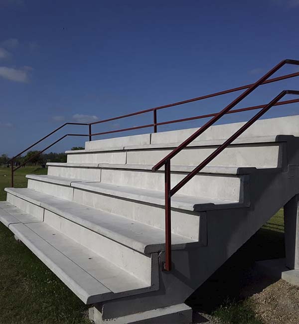 Gradas fabricadas bajo sistema de hormigón armado. Alta resistencia y durabilidad, sin necesidad de mantenimiento.